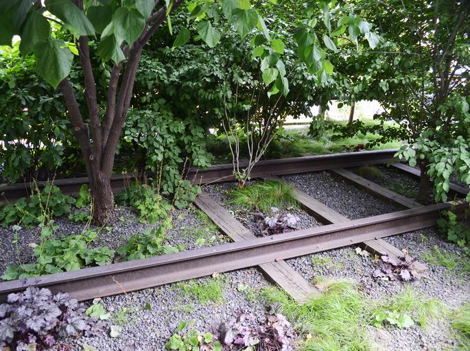 Keywords: new york garden the high line railroad elevated track train urban railway chelsea