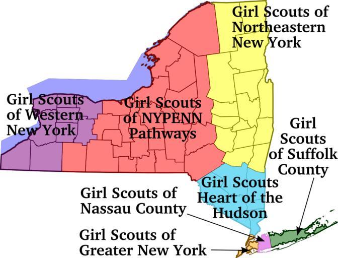 | Keywords: New-york-gsusa.svg Map of Girl Scout Councils in New York my work based on Wikipedia county maps 2009-06-23 Emma Pease Erp Original upload log en wikipedia New-york-gsusa svg 2009-06-22 19 36 Erp 6599×5030× 132779 bytes <nowiki> Map of Girl Scout councils in New York State my work based on the wikipedia county maps 2009-06-23 Emma Pease </nowiki> Category Girl Scouts of the USA Council maps Scouting in New York | ||||