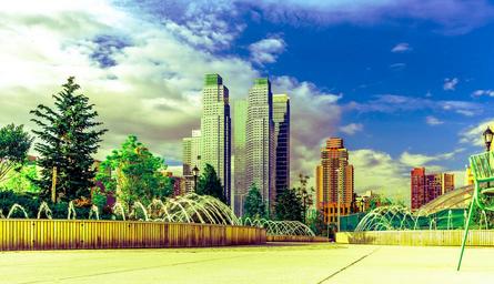 Keywords: new york javits center landscape city urbal fountain park no people skyscrapers