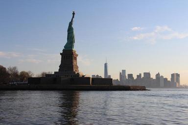 Keywords: new york skyline new york city skyline landmark twilight water harbor tourism travel architecture cityscape america building sky