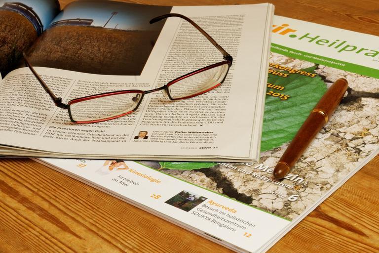 Keywords: newspaper glasses read education pen filler wood office desk text