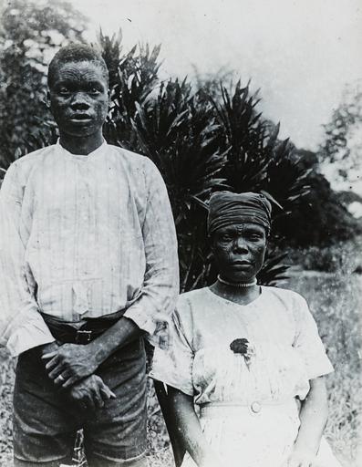 | Keywords: Ngombe couple, Congo, ca. 1900-1915 (IMP-CSCNWW33-OS11-22).jpg Belgian Congo present day Democratic Republic of the Congo The husband wears a round-necked shirt trousers and belt His wife wears a light smart European style dress with a flower pinned onto it and a head-wrap Note the scarification designs on the faces of the couple This slide comes from a collection generated by missionaries working for the Congo-Balolo Mission a mission begun in 1889 under the supervision of the East London Training Institute for Home and Foreign Missions that developed into the interdenominational evangelical mission Regions Beyond Missionary Union after 1900 Photographer Unknown Filename IMP-CSCNWW33-OS11-22 tif Coverage date 1900/1915 Subject unesco Marriage Part of collection International Mission Photography Archive ca 1860-ca 1960 Part of subcollection Photographs from the Centre for the Study of World Christianity University of Edinburgh U K ca 1900-ca 1940s Subject corporate name Congo-Balolo Mission Repository name Centre for the Study of World Christianity Archival file Volume2/IMP-CSCNWW33-OS11-22 tif Repository address The University of Edinburgh School of Divinity New College Mound Place Edinburgh EH1 2LX United Kingdom Geographic subject country Congo Format aacr2 lantern slides 8 2 x 8 2cm Geographic subject continent Africa Rights Contact the repository for details Part of series Regions Beyond Missionary Union Congo People and Places CSCNWW33/OS11 Repository email divinity-CSWC ed ac uk Date created 1900/1915 Publisher of the digital version University of Southern California Libraries Subject aat genre group portraits Format aat lantern slides; photographs Access conditions http //www ed ac uk/schools-departments/divinity/research/centres/world-christianity/collections-resources Geographic subject populated places File CSCNWW33/OS11/22 Subject lcsh Ngombe African people ; Married people; Scarification body marking 1900/1915 date created author http //digitallibrary usc edu/cdm/ref/collection/p15799coll123/id/78102 PD-old-70-1923 Bantu peoples Women of the Democratic Republic of the Congo 1910s Men of Africa 1910s People of the Democratic Republic of the Congo Scarification in the Democratic Republic of the Congo Congo-Balolo Mission Magic lantern images Images from USC Digital Library uploaded by Fæ International Mission Photography Archive ca 1860-ca 1960 Men with scarification Women with scarification |