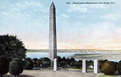 Keywords: architecture outdoor NH 102774-KN (color): USS Bennington Monument, Fort Rosecrans, San Diego, California. Color-tinted postal card, published by H.L. Christiance, San Diego. This monument was erected in memory of the Navy personnel who lost their lives in the boiler explosion on board USS Bennington (Gunboat # 4) at San Diego on 21 July 1905. North Island is in the right background. One copy of this card was mailed at Long Beach, California, on 28 October 1922 with the following message: "Say Betsy! Pointing to Heaven. Looks like a long slender finger, doesn't it?." Courtesy of H.E. ("Ed") Coffer. U.S. Naval History and Heritage Command Photograph. (2016/01/04). NH 102774-KN (color): USS Bennington Monument, Fort Rosecrans, San Diego, California. Color-tinted postal card, published by H.L. Christiance, San Diego. This monument was erected in memory of the Navy personnel who lost their lives in the boiler explosion on board USS Bennington (Gunboat # 4) at San Diego on 21 July 1905. North Island is in the right background. One copy of this card was mailed at Long Beach, California, on 28 October 1922 with the following message: "Say Betsy! Pointing to Heaven. Looks like a long slender finger, doesn't it?." Courtesy of H.E. ("Ed") Coffer. U.S. Naval History and Heritage Command Photograph. (2016/01/04). |