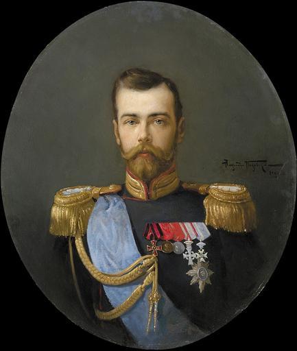 | Keywords: Nicholas II by A.Makovskiy (1903, priv.coll).jpg Portraits of Nikolai II and Alexandra Fedorovna two works each signed and dated 1903 Oil on canvas laid on board measuring 84 by 71 cm oval and 83 5 by 70 cm oval respectively 200 000-300 000 GBP Provenance Private collection Europe Authenticity of the work has been confirmed by the expert N Ignatova Alexander Makovsky painted these matching portraits of Emperor Nicholas II and his wife Empress Alexandra Feodorovna in 1903 as official full-dress portraits of the ruling family Portraits of this kind were commissioned as gifts for officials or organisations and were obliged to conform to an imperially approved image Alexander Makovsky often painted full-dress portraits of imperial persons depicting Nicholas II in the uniforms of various regiments under his or the Empress's patronage and even exhibited one of these at the 38th Exhibition of the Society of Itinerant Art Exhibitions in 1909-1910 Today the collections of the Russian Museum the Hermitage the Historical Museum and the Tsarskoe Selo Museum and Estate still include both small-scale and large-format portraits by this artist of Nicholas Alexandrovich on horseback and Alexandra Feodorovna in a formal white evening gown and jewelled diadem In the oval portrait now offered at auction Empress Alexandra Feodorovna is portrayed in court dress with a kokoshnik head-dress and veil and the sash and diamond insignia of the Order of Saint Catherine the highest order of the Russian Empire for women It was Nicholas I great-grandfather of the last Emperor who had introduced court dress in the Russian style as obligatory practice At the end of the 19th century thanks to a new wave of enthusiasm for the Russian style many high-society ladies headed by the Empress returned once more to this kind of court dress embroidered with pearls when posing for portraits Nicholas II is likewise depicted as a holder of the highest order with the medal-ribbon of Saint Andrew the First-Called and in the full-dress uniform of a Colonel in His Majesty's Preobrazhensky Life Guards Regiment We can therefore consider Makovsky's matching portraits not only as top-quality works of art in the sphere of formal imperial family portraiture but also as significant historical testimony of the epoch According to the present owner the portraits originate from the collection of the Russian Imperial family and could at some point have decorated the interior of the Winter Palace After the Revolution of 1917 the portraits along with a number of other artworks of imperial subjects were taken to Denmark by the sister of Nicolas II the Grand Duchess Olga Alexandrovna She was accompanied by her lady in waiting Baroness Eugenie Bagge af Boo the great-grandmother of the present owner in whose possession the portraits remained after the fraught journey from Russia to Malmö in Sweden ___________________________________________________________________________________________________ http //macdougallauction com/Indexx asp id 17236 lx a 1903 Creator Alexander Makovski Alexander Makovski Files uploaded by Shakko from various sources MacDougall's Fine Art Auctions PD-old Painted portraits of Nicholas II of Russia Portraits of Russian rulers wearing military uniform |