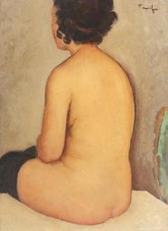 | Keywords: Nicolae Tonitza - Nud cu spatele2.jpg ro Nud cu spatele 1928-1929 ulei pe carton 69 5 x 49 5 cm semnat dreapta sus cu negru Tonitza Opera a participat la Expoziția Personală N N Tonitza Galeriile de Artă Calea Victoriei nr 83 București 1-30 aprilie 1929 și este reprodusă ca atare în revista Adevărul Literar și Artistic 7 aprilie 1929 pag 3 http //www artmark ro/catalog/index php/licitatia-de-primavara-52-2012/nicolae-tonitza-nud-cu-spatele html Creator Nicolae Tonitza 1928-1929 PD-old-auto 1940 Female nudes by Nicolae Tonitza Paintings of nude sitting females in the 20th century |