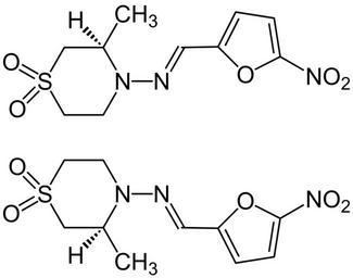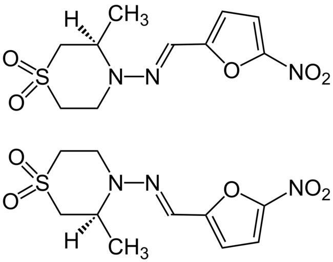 MAKE A MEME View Large Image (±)-Nifurtimox Structural Formulae.svg en ± -Nifurtimox_Structural_Formulae de ± -Nifurtimox-Strukturformel own Jü 2010-04-04 Racemate Nitrofurans Cyclic sulfones Racemic mixture