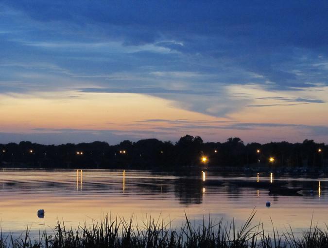 Keywords: nightfall lake sundown landscape nature serene lights on colorful calm dusk sunset white rock lake dallas texas