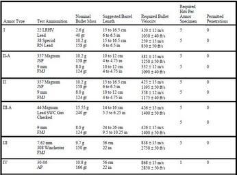 Keywords: NIJ table.JPG en NIJ ballistic chart NIJ standard INKAS Armored 2010-10-10 Tables information