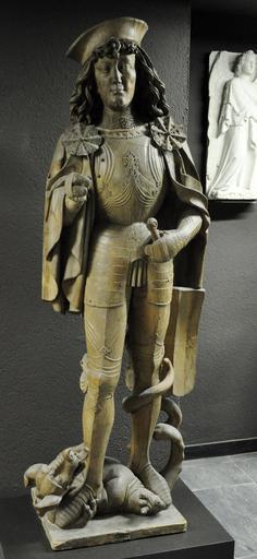 Keywords: Niklaus Weckmann Hl Georg Liebieghaus.jpg Heiliger Georg Ulm 1496-1499 Eichenholz <br />Liebieghaus Frankfurt am Main Inv Nr 73 ausgestellt im Schaudepot <br />Laut Beschriftung im Liebieghaus aus Ochsenhausen nach anderen Angaben aus der Georgskapelle in Ravensburg später Sammlung Theodor Schnell d J 1906 an das Liebieghaus verkauft own 2011-04 Creator Niklaus Weckmann Photo User FA2010 <gallery> File St Georg Kopie von Theodor Schnell dJ c1900 img01 jpg Copy by Theodor Schnell d J </gallery> Schaudepot Liebieghaus Frankfurt Medieval sculptures in the Liebieghaus Niklaus Weckmann Statues of Saint George and the Dragon 1490s sculptures in the Liebieghaus Statues of knights Georgskapelle Ravensburg |