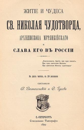 | Keywords: Nikolaj II Titel.jpeg ru Вто ой титульный лист книги Воск есенского и Гусева Житие и чудеса св иколая Чудотво ца en Russian edition Second title page of the book of Voskresensky and Gusev Life and St Nikolay Chudotvorts's miracles 1899 Житие и чудеса св иколая Чудотво ца Воск есенский Гусев Custom license marker 2014 09 09 PD-old-100 Uploaded with UploadWizard Life and miracles of Saint Nicholas | ||||