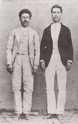 | Keywords: Nikolcho Tsvetkov Bakardzhiata, Hristo Tsonev Latinetsa (1878).jpg По т ет на съ атниците на Васил Левски иколчо Цветков Бакъ джията и Х исто Цонев Латинеца Portrait of Vasil Levski's comrades Nikolcho Tsvetkov Bakardzhiata and Hristo Tsonev Latinetsa Scanned from Vasil Levski Documentary Chronicle Dr Peter Beron Publishing House Sofia 1987 Васил Левски Документален летопис Ки ила Възвазова-Ка атеодо ова Зд авка онева Викто ия Тилева ДИ Д Петъ Бе он София 1987 ст 217 1878 Author Public domain Anonymous-EU Revolutionaries from Bulgaria Vasil Levski Deaths in Lovech Births in Lovech |