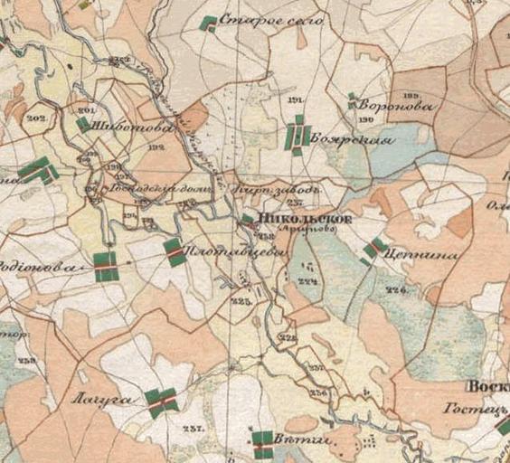 Keywords: Nikolskoe (argunovo).jpg ru Ф агмент атласа Александ а Ивановича енде Владими ская губе ния Село икольское А гуново 2013-02-23 20 11 19 Атлас Владими ской губе нии 1850 г енде Александ Иванович PD-Art Uploaded with UploadWizard Argunovo Petushinsky District |