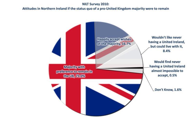 | Keywords: NILT2010 FUTURE2 pie unionjack.png en 2010 Northern Ireland opinion poll on attitudes to the status quo of the pro-United Kingdom majority Data from the Northern Ireland Life and Times Survey http //www ark ac uk/nilt/ Data is aggregated from the http //www ark ac uk/nilt/2010/Political_Attitudes/FUTURE2 html FUTURE2 question and the http //www ark ac uk/nilt/2010/Political_Attitudes/NIRELND2 html NIRELND2 question 2011-07-06 own IrishBriton File NILT2010 FUTURE2 pie png cc-zero Uploaded with UploadWizard Demographics of Northern Ireland |