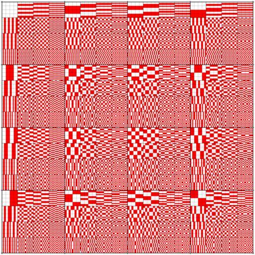 Keywords: Nimber multiplication 8 bit; dual; 5.svg Element 5 of the dual matrix of the https //oeis org/A051775/a051775 txt multiplication table of nimbers 0 255 A051775 0 255; 0 255 It is the product of wp A223537 0 8; 5 and the binary Walsh matrix of order 256 own mate2code Nimber multiplication 8 bit; dual