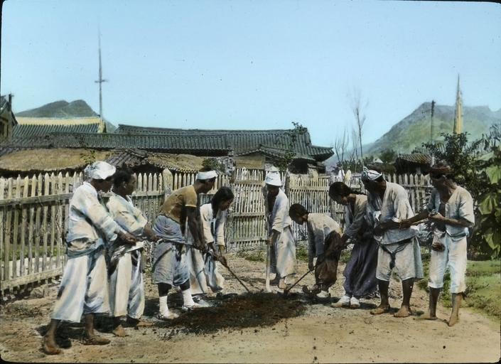 Keywords: Nine-man shovel, Korea, (s.d.) (Taylor box21num15).jpg en <br> Nine-man shovel Korea s d Nearly all Korean labor methods are unique Actual experiment has demonstrated that nine or six or even three men using this kind of hand-digging shovel can do more work more easily than the same number of men vigorously using individual shovels Date created 1908/1922 Publisher of the Digital Version University of Southern California Libraries Repository Name Methodist Church U S Legacy Record ID kda-m82 Photographer Methodist Episcopal Church Format photograph Archival file kda_Volume42/Taylor_box21num15 jpg Rights Neither the General Conference nor any General Agency of The United Methodist Church successor to the Methodist Episcopal Church claims any interest in the photos or images Filename Taylor_box21num15 Coverage date 1908/1922 Contributing entity University of Southern California Repository Address Nashville Tennessee Part of collection Korean Digital Archive Donor Taylor Ewing Bevard Type images Part of subcollection The Reverend Corwin Nellie Taylor Collection Geographic Subject Country Korea Compiler Taylor Corwin; Blood-Taylor Nellie 1908/1922 Methodist Episcopal Church http //digitallibrary usc edu/cdm/ref/collection/p15799coll48/id/713 PD-Japan-oldphoto Korean archive in the USC digital library Images from USC Digital Library uploaded by Fæ |