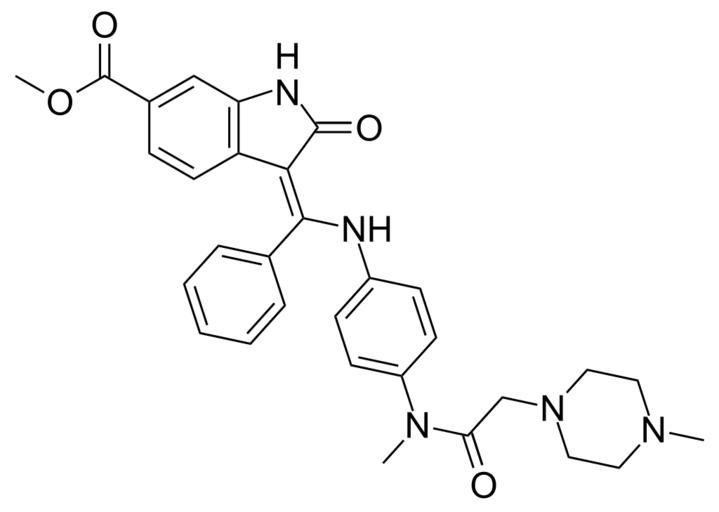 Keywords: Nintedanib.svg Chemical structure of w nintedanib Own 12 48 9 May 2011 UTC Ed Edgar181 Chemotherapeutic agents Indolones Piperazines Methyl esters