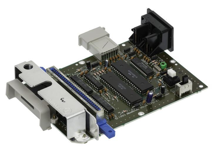 | Keywords: Nintendo-AV-Famicom-Motherboard-BR.jpg The motherboard for the Nintendo Famicom video game console model HVC-101 This is the revised version of the console commonly called the AV Famicom that was released in 1993 It features a streamlined and revised motherboard Unlike the regular Famicom this version offers composite video out through a Nintendo multi-AV connector <br>The motherboard is based on an 8-bit MOS 6502 processor produced by Ricoh Chips from the motherboard are listed below <br>Ricoh RP2A03H 4BM 4W <br>Ricoh RP2C02H-0 4BM 4T <br>Nintendo J10 A BU3270S 421 153 <br>MB74LS737 9216 F42 <br>BR6126B-10LL 529 168 x2 own 2015-06-11 Evan-Amos User Evan-Amos/EABanner Electronic devices on white background Taken with Nikon D7100 Evan-Amos Nintendo Entertainment System NES-101 Computer motherboards Ricoh 6502 microprocessor |