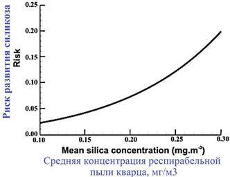 Keywords: NIOSH-2011-17+.jpg ru Рисунок 17 из обзо а п офзаболеваний шахтё ов http //www cdc gov/niosh/docs/2011-172/pdfs/2011-172 pdf Coal Mine Dust Exposures and Associated Health Outcomes Риск азвития силикоза п и вдыхании еспи абельной ква цевой пыли п и с едней концент ации меньшей 2 мг/м3 п и подземном стаже 15 лет Использованы езультаты английского исследования 2004г П и увеличении концент ации с 0 1 до 0 3 мг/м3 иск воз астает с 2 5 до 20 Источник 55 en Figure 17 Risks for category 2 silicosis in relation to respirable silica concentration <2 mg/m3 averaged over 15 years Source Soutar et al 55 2015-04-21 http //www cdc gov/niosh/docs/2011-172/pdfs/2011-172 pdf Coal Mine Dust Exposures and Associated Health Outcomes A Review of Information Published Since 1995 Michael Attfield et al NIOSH USA other versions PD-USGov National Institute for Occupational Safety and Health Mining Workplace safety Workplace safety of Russia Occupational diseases Miners Uploaded with UploadWizard