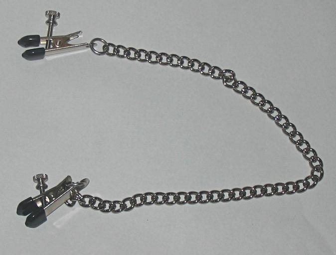 | Keywords: Nippleclamps.jpg A pair of alligator clip-style nipple clamps The clamps are connected by a length of chain which can be tugged on to increase the sexual pleasure or intensity of sensations of the wearer; some styles of nipple clamps including alligator-clip style do not include this chain The ends of the alligator clip of the clamps are covered with replaceable vinyl tips to protect the nipples of the wearer The metal stems sticking out clamp allow the tension with which they grip the nipple to be made weaker or stronger to fit the comfort of the wearer when turned to the right the tips of the nipple clmaps will be closer together when they are closed If turned to the left the tips will be wider apart These clamps were manufactured by Spartacus Enterprises Source Self-made Photographer Kit O'Connell Todfox 10 41 3 January 2006 UTC <br> Beschreibung Ein Paar Krokodilklemme Stil Nippelklemmen einige Arten von Nippelklemmen einschließlich Alligator-Clip-Stil nicht enthalten diese Kette; Die Klemmen sind durch eine Länge von Kette die zerrte kann auf die sexuelle Lust oder Intensität der Empfindungen des Trägers erhöhen verbunden Die Enden der Krokodilklemme der Klammern sind mit auswechselbaren Spitzen Vinyl abgedeckt um den Schutz Brustwarzen des Trägers Das Metall stammt herausragen Klemme erlauben die Spannung mit denen sie Halt die Brustwarze gemacht schwächer oder stärker sein um den Komfort des Trägers passen wenn nach rechts gedreht die Spitzen der Brustwarze clmaps wird näher zusammen wenn sie geschlossen sind Wenn nach links gedreht wird die Spitzen werden weiter auseinander Diese Klemmen wurden hergestellt Spartacus Unternehmen Quelle Self-made Fotograf Kit O'Connell Todfox 10 41 3 Januar 2006 UTC Nipple clamps Clamps with screws |