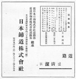 Keywords: Nippon Hodo advertisement in 1930s.jpg Nippon Hodo advertisement in 1930s 1930年代の日 鋪道広告 Japanese book The history of Greater Tokyo Chapter of Showa era published by Gendai-Tsushin Sha 現代 信社 大 京発達史・昭和編 より 1930s 1930年代 author Notes This file was scanned and edited by the uploader Abasaa ファイルはあばさーによりスキャンおよび編集されました PD-Japan Advertisements in Japan |