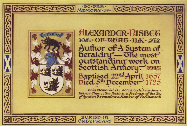 Keywords: Nisbetmemorial.jpg Memorial to Alexander Nisbet the Herald in Greyfriars Kirk Edinburgh Scotland 2006-01-11 own assumed Marknesbitt Monuments and memorials in Edinburgh