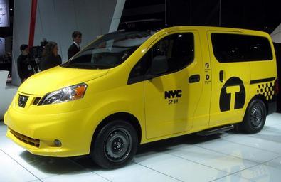 Keywords: Nissan NV200 NYC Cab -- 2012 NYIAS.JPG Nissan NV200 photographed at the 2012 New York International Auto Show Own 2012-04-04 IFCAR All Rights Released Nissan NV200 taxis in New York City 2012 New York International Auto Show Automobiles facing left |