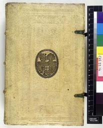 Keywords: Nitela Franciscan religionis, et abstersio sordium quibus eam conspurcare frustra tentavit A. Bzovius, etc. Prodit nunc primum. - Upper cover (c65gg14).jpg Style Armorial Panel design; Caption Upper cover; Colour White / cream; Edge Unspecified exhibition history Decorative Technique Tooled in blind Tooled in alloy frequently gold and silver zwischen gold ; Cover Material Pigskin alum tawed 2 pairs of clasps With the arms of Joachim Enzmulner in the centre of the upper cover and an inscription in the centre of the lower cover object history Text 1627; Leiden; Enzmulner Joachim object type Cc-zero place of creation Binding Germany place of discovery Unspecified British Library image http //www bl uk/catalogues/bookbindings/LargeImage aspx RecordId 020-000008596 ImageId ImageId 43903 Copyright BL Nitela Franciscan religionis et abstersio sordium quibus eam conspurcare frustra tentavit A Bzovius etc Prodit nunc primum Uploaded with GWToolset Nitela Franciscan religionis et abstersio sordium quibus eam conspurcare frustra tentavit A Bzovius etc Prodit nunc primum - Upper cover c65gg14 http //www webarchive org uk/bldatasets/bindings/9227_4 jpg Bookbinding 17th-century bookbinding British Library Bookbindings |