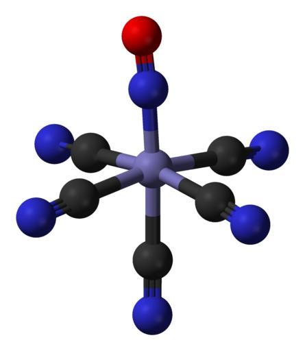 | Keywords: Nitroprusside-anion-from-xtal-3D-balls.png Ball-and-stick model of the nitroprusside anion Fe CN <sub>5</sub>NO<sup>2 ˆ’</sup> in the crystal structure of sodium nitroprusside Na<sub>2</sub>Fe CN <sub>5</sub>NO Neutron crystallographic data from http //dx doi org/10 1107/S0108270188013691 Acta Cryst 1989 C45 839-841 Model constructed in http //www crystalmaker com/ CrystalMaker 8 1 Image generated in http //accelrys com/products/discovery-studio/visualization/discovery-studio-visualizer html Accelrys DS Visualizer own 2009-02-23 Ben Mills Benjah-bmm27 Images by Ben Mills Nitroprusside ion |