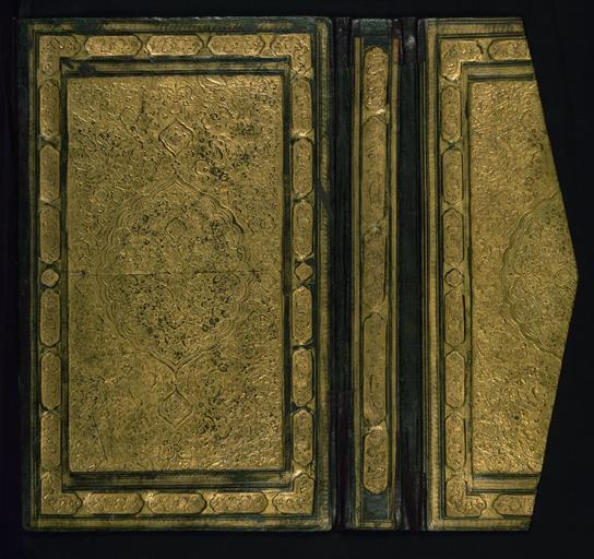 | Keywords: Nizami Ganjavi - Five Poems (Quintet) - Walters W610 - Bottom Exterior Open.jpg Walters manuscript W 610 is an illuminated and illustrated copy of the Khamsah quintet of Nizami Ganjavi died 605 AH/AD 1209 that was executed in Safavid Iran and dates to the middle of the 10th century AH/AD 16th There are 6colophons in Arabic that supply neither the date nor the scribe's name fols 31b 119a 175a 238a 325a and 371a The text is written in black Nasta'liq script with section headings in blue Twenty paintings attributable to the Shiraz school illustrate the text The dark brown leather binding with central ovals and pendants all brushed with gold is original to the manuscript century 16 AD Safavid ink pigments laid paper covered with dark brown leather with gold Folio cm 32 5 20 accession number W 610 22150 Henry Walters Baltimore date and mode of acquisition unknown Walters Art Museum Henry Walters Acquired by Henry Walters Masterpieces of Ornament The Walters Art Gallery Baltimore 1988 The Royal Style The Walters Art Gallery Baltimore 1988-1989 Mything Persons Historic Figures in Legends of East and West The Walters Art Gallery Baltimore 1998 place of origin Iran Walters Art Museum license 3D Khamsa of Nizami Safavid Walters MS 610 Media contributed by the Walters Art Museum needs category review |