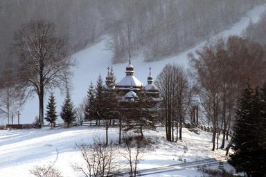 Keywords: Nizny Komarnik cerkov06012009.jpg sk Cerkov v Nižnom Komárniku je umiestnená na navŕši nad obcou v nádhernom prostrední Nízkych Beskýd 712-1885/0 own Peter Zelizňák 2009-01-06 Winter in Slovakia Temple of the Protection of the Mother of God Nižný Komárnik Images by Peter Zeliznak |