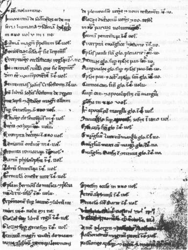 | Keywords: NKP XXIII E 21 fol 170r Bibliothekskatalog.jpg Prag Národní knihova XXIII E 21 Lobkowitz 469 ehemals Kloster Weißenau fol 170r unvollständiger Bibliothekskatalog Elke Wenzel Die mittelalterliche Bibliothek der Abtei Weißenau Lang Frankfurt am Main 1998 ISBN 3-631-32206-2 Bildunterschrift dort fälschlich 179r century 13 anonymous PD-old-100 NKP XXIII E 21 Library cataloging and classification | ||||