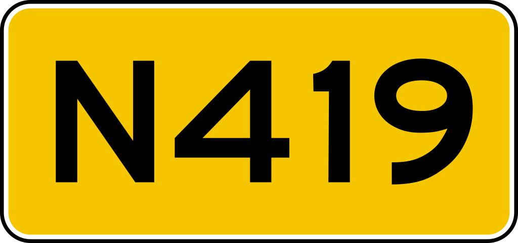 Keywords: NLD-N419.svg en Netherlands provincial highway shield nl Provincionale weg/rijksweg schild pl Tabliczka holenderskiej drogi prowincjonalnej/autostrady own 2015-01-21 Fredddie PD-NL-verkeersbord Diagrams of national and provincial road number signs of the Netherlands |