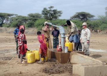 Keywords: NMCB 74 Seabees Drill Water Well in Horn of Africa DVIDS372651.jpg en Petty Officer 2nd Class Kevin Clayton and Petty Officer 1st Class Dennis Hill Seabees assigned to Naval Mobile Construction Battalion 74 Detail Horn of Africa's Water Well Team test the pump on their recently completed water well in the village of Jedane Ethiopia The 302-foot-deep well provides clear water to more than 3 400 locals and their livestock NMCB 74 Det HOA is deployed to support Combined Joint Task Force-Horn of Africa in building partner nation capacity and promoting regional stability through construction engineering support in accordance with the U S Maritime Strategy 2011-02-15 left https //www dvidshub net/image/372651 110215-N-+++++-003 2011-03-02 11 24 JEDANE ET PD-USGov-Military-Navy Combined Joint Task Force - Horn of Africa Images from DoD uploaded by Fæ |