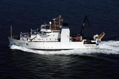 | Keywords: NOAA Ship Hnery B Bigelow.jpg The NOAA Ship Henry B Bigelow is the second vessel in the Fisheries Survey Vessel class of research vessel built to modernize the aging NOAA fleet The Henry B Bigelow was built by V T Halter shipyard in Pascagoula MS and launched on July 8 2006 She was commissioned on July 16 2007 at NOAA ™s Office of Marine and Aviation Operations Marine Operation Center Atlantic in Norfolk VA The Henry B Bigelow has a length of 209 feet a breadth of 49 2 feet and a draft of 19 4 feet fully laden She has a maximum displacement of 2 479 metric tons a maximum range of 12 000 nautical miles and a cruising speed of 12 knots with an endurance of 40 days The ship has a complement of 4 Commission NOAA Corps officer and an Engineering Department consisting of 4 Licensed Engineers with 2 Unlicensed Engineers and 1 Electronics Engineering Technician There are also 2 Survey Technicians 1 Electronics Technician 6 members in the Deck Department and 2 Stewards There is bunk space on board for 16 scientific personnel The Henry B Bigelow is equipped with a diesel-electric propulsion system utilizing 4 Caterpillar generators that power 2 main Saldo electric motors There is 1 891 square feet of laboratory space on board her ranging from a fisheries wet lab to a sophisticated hydroacoustic lab There is also a hospital capable of handling a wide variety of medical emergencies with 2 dedicated bunks The vessel is equipped with 6 Rapp Hydema winches used for fishing and deploying hydrographic equipment She also has 2 Appleton cranes an aft gantry and a side sampling station A-frame In early 2009 she will replace the Albatross IV which has carried out bottom trawls surveys on the Northeast coast of the U S for over 40 years The 2 vessels undertook extensive calibration exercises for the better part of 2007 and 2008 in order to keep this important dataset valid In early 2007 the Henry B Bigelow became one of the world ™s quietest research vessel exceeding all standards set forth by the International Council for Ocean Exploration She is currently stationed at Navy Station Newport in Newport RI Plans are being finalized for her to move to her homeport of Woods Hole MA to facilitate research done by the Northeast National Marine Fisheries Service which as a regional lab there Made by myself for wikipedia Peter Gamache 2008-10-29 NOAA RV Henry B Bigelow ship 2005 |