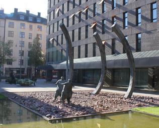 Keywords: Noas dans, Lasse Trollberg 1975.JPG sv Noas dans skulpterad av Lasse Trollberg 1975 Rest utanför Trygg-Hansa-huset Fleminggatan Kungsholmen Stockholm own Jssfrk 2011-09-29 FoP-Sweden se Noas dans