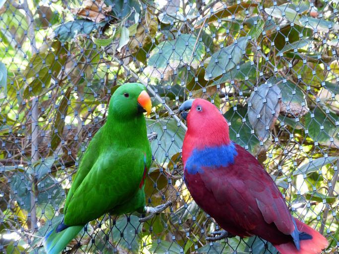 Keywords: noble parrots parrots couple love pair caress birds eclectus roratus colorful parrot males female red blue eclectus green color riedel-edelpapagei eclectus roratus riedeli watch love to watch