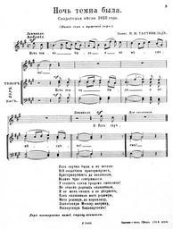 | Keywords: Noch Temna byla.jpg ru Песню « очь темна была» сочинили усские солдаты стоявшие под Та утином во главе с фельдма шалом И Кутузовым Здесь слышен и плач по одной «златоглавой оскве-матушке азо енной Бонапа тiем» и клятва отомстить чтобы «ни одна б душа инове ная не п ишла назад в свою сто ону » » Га тевельд В очь темна была солдатская песня 1812 года пение соло и мужской хо / зап В Га тевельд Санкт-Пете бу г и д Юлий Ген их Цимме ман б г 3 с 2015-02-19 http //www 1812 rsl ru/materials/notes/186/ timezone_id 126 Russian Folk Song arranged by Wilhelm Garteweld 1859 1927 other versions PD-old-70-1923 Uploaded with UploadWizard Russian folk songs Wilhelm Harteveld |