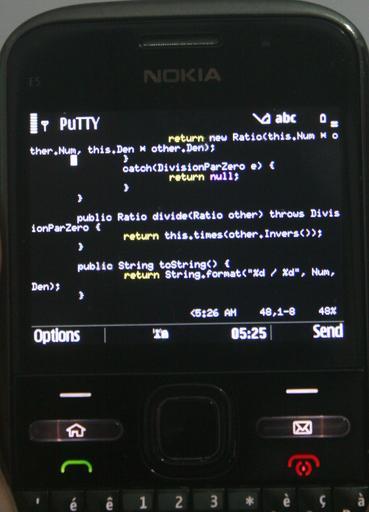 Keywords: Nokia E5 running PuTTY 1.5.2, on Symbian OS, with Vim syntax Highlighting.jpeg Uploaded with en wp UW marker 2012 08 16 Photo of a Nokia E5 smart phone screen running PuTTY 1 5 2 SSH Client connected to a Ubuntu Linux system which is running the Vim text editor Demonstrates that the Symbian version of PuTTY supports colour terminal Image by Jamesconception 2012 21 March 2010 Release of the version on the photo PuTTY 1 5 2 Simon Tatham and others http //prdownloads sourceforge net/s2putty/putty_users_guide pdf download ;Other information The program is to be shared and modified freely as long as the original Terms from the programmer are shared with it The photograph though is mine and is a simple screenshot cc-by-1 0 Computer science SSH Nokia E5 Linux |