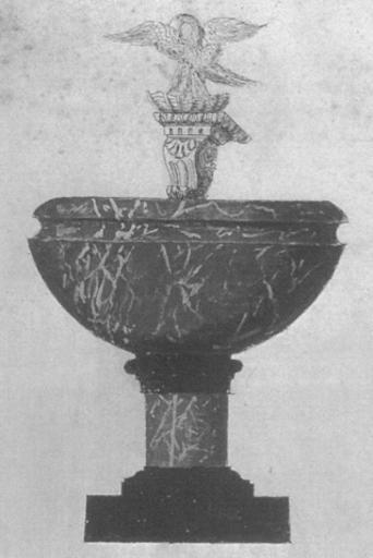 | Keywords: Nonsuch Palace - Red Velvet Book - Pelican Bowl.jpg en The Pelican Bowl by the south-west tower in the Privy Garden Pen with grey and black wash and veined dark red marbling 1590 artist unknown; from The Red Velvet Book f 30v 1590 Martin Biddle The Gardens of Nonsuch Sources and Dating in Garden History Vol 27 No 1 Tudor Gardens Summer 1999 pp 145-183 author Custom license marker 2012 03 06 PD-old-100 Nonsuch Palace Uploaded with UploadWizard | ||||