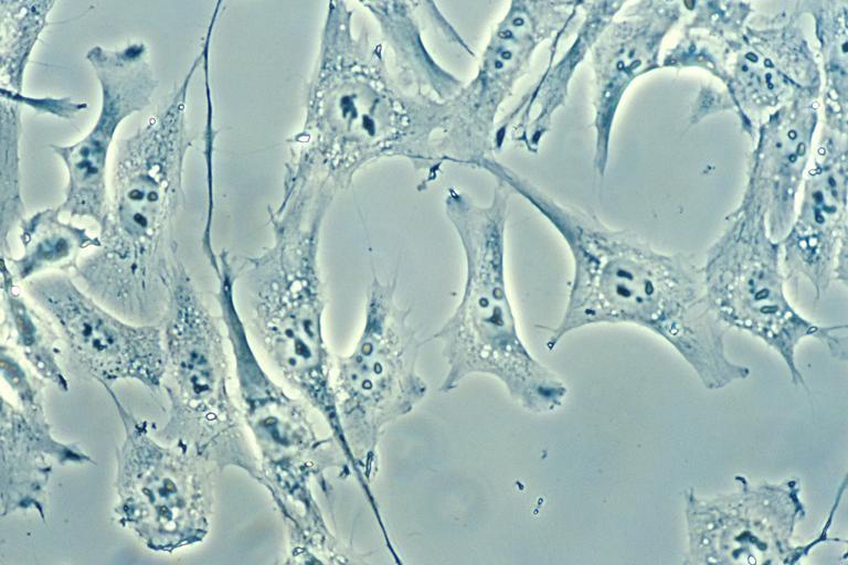 | Keywords: Normal cells.jpg Normal cells from human connective tissue in culture at a magnification of 500x using a darkfield amplified contrast technique This slide can be compared to cancerous cells on See also http //visuals nci nih gov/details cfm imageid 2305 Topics/Categories Cells or Tissue Normal Cells or Tissue Type Color Photo Source National Cancer Institute Dr Cecil Fox Photographer 2303 1987-11 Reuse Restrictions None - This image is in the public domain and can be freely reused Please credit the source and/or author listed above Dr Cecil Fox Photographer PD-USGov-HHS-NIH Media from National Cancer Institute Visuals Online Images uploaded by Fæ |