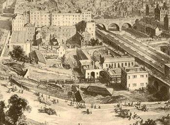 Keywords: North bridge ebsworth.jpg en A view of the North Bridge station and Canal Street station in Edinburgh about 1850 looking south-east 1850-01-01 Freely available on the internet Joseph Woodfall Ebsworth 1824 - 1908 other versions PD-old-70-1923 History of Edinburgh Railway lines in Scotland |