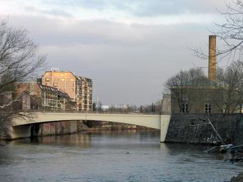 Keywords: North Market St Bridge Wilmington.JPG Brandywine Creek in w Wilmington Delaware looking downstream East The buildings on the left are condos built on the foundations of mills from the 1800's The left bank is part of the Brandywine Village Historic District on the NRHP The building on the right is the Wilmington Brandywine Pumping Station which pumps water from the Brandywine to homes in Wilmington The bridge marks the approximate level of tidewater on the Brandywine Just upstream are rapids - the fall of the water used to power water mills in Brandywine Village and ocean-going ships loaded at the pool just east of the bridge The bridge's address would be about 1800 Market Street Wilmington Delaware own Smallbones 2010-01-19 January 2010 in Delaware Brandywine Creek Christina River Bridges in Delaware Concrete deck arch bridges in the United States Bridges in the United States photographed in 2010 U S Route 13 in Delaware Photographs taken on 2010-01-19 Brandywine Village Historic District Brandywine Pumping Station |