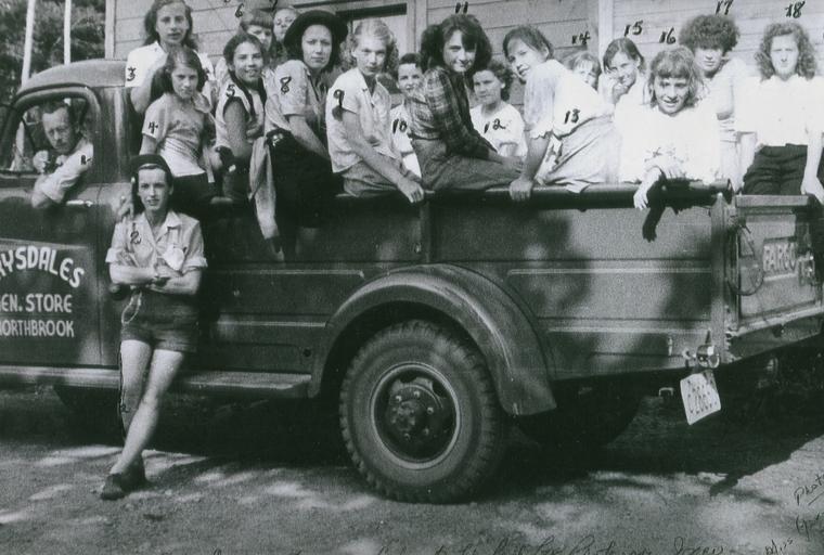 | Keywords: girl guides girlguides northbrook 1940s sandy drysdale sandydrysdale mary lloyd johnson marylloydjohnson marlene jerome marlenejerome marlene hall marlenehall audrey freeburn audreyfreeburn audrey weese audreyweese theresa jerome theresajerome theresa craig theresacraig joanne mcneil joannemcneil shirley roseplot shirleyroseplot marilyn dicks marilyndicks marilyn salmond marilynsalmond barbara renaud barbararenaud barbara thompson barbarathompson verna rosenplot vernarosenplot verna wood vernawood hilda woodman hildawoodman hilda davis hildadavis phyllis creighton phylliscreighton professor jones dora shier dorashier betty both bettyboth norvalle inwood norvalleinwood people This is a photo of the Northbrook Girl Guides in June 1950. The man driving the truck is Sandy Drysdale who lived in the home where Wannamaker's Store is now located. Sandy donated his truck and time to take the Guides to Loon Lake Camp. This photo was taken in front of the utility building at Loon Lake Lodge. 'The Guides had a hike on Loon Lake where Professor Jones gave lectures on plant, bird and animal life in the wild.' 1. Sandy Drysdale (lived in the house that is now Wannamaker's Store) 2. Mary Lloyd Johnson - Captain-very instrumental in arranging all the troupe's activities and outings. Even drove a group to a G.G. convention in Toronto once. This photo was on her camera. 3. Marlene Jerome (Hall) - cousin of Elaine Bolton 4. Audrey Freeburn (Ray Weese) - sister in law to Rita Freeborn at the Flinton Post Office 5. Theresa Jerome (Craig) - sister of Marlene 6. Joanne McNeil 7. Shirley Rosenplot 8. Norvalle Inwood 9. Marilyn Dicks (Mack Salmond) - Marilyn's mother made most of the uniforms 10. Betty Both 11. Barbara Renaud (Thompson) 12. Verna Rosenplot (Clifford Wood) 13. Hilda Woodman (Davis) 14. ??? 15. ??? 16. Phyllis Creighton 17. ??? 18. Dora Shier On the back of the photo Mary Lloyd Johnson further notes: 'Later in the Summer we held Patrol Leader training at Bill and Jan Dicks' cottage on Loon Lake. The Professor and Mrs. Jones (and dog Streba) motored across the Lake tohave a meal with us as our guests. On that weekend we had a Guide Leader from England with us, sister-in-law of County Sheriff Webster from Napanee'. On this outing Guides from other areas had been invited and it's possible that the three girls we can't identify did not belong to the 1st N.A. co. This is a photo of the Northbrook Girl Guides in June 1950. The man driving the truck is Sandy Drysdale who lived in the home where Wannamaker's Store is now located. Sandy donated his truck and time to take the Guides to Loon Lake Camp. This photo was taken in front of the utility building at Loon Lake Lodge. 'The Guides had a hike on Loon Lake where Professor Jones gave lectures on plant, bird and animal life in the wild.' 1. Sandy Drysdale (lived in the house that is now Wannamaker's Store) 2. Mary Lloyd Johnson - Captain-very instrumental in arranging all the troupe's activities and outings. Even drove a group to a G.G. convention in Toronto once. This photo was on her camera. 3. Marlene Jerome (Hall) - cousin of Elaine Bolton 4. Audrey Freeburn (Ray Weese) - sister in law to Rita Freeborn at the Flinton Post Office 5. Theresa Jerome (Craig) - sister of Marlene 6. Joanne McNeil 7. Shirley Rosenplot 8. Norvalle Inwood 9. Marilyn Dicks (Mack Salmond) - Marilyn's mother made most of the uniforms 10. Betty Both 11. Barbara Renaud (Thompson) 12. Verna Rosenplot (Clifford Wood) 13. Hilda Woodman (Davis) 14. ??? 15. ??? 16. Phyllis Creighton 17. ??? 18. Dora Shier On the back of the photo Mary Lloyd Johnson further notes: 'Later in the Summer we held Patrol Leader training at Bill and Jan Dicks' cottage on Loon Lake. The Professor and Mrs. Jones (and dog Streba) motored across the Lake tohave a meal with us as our guests. On that weekend we had a Guide Leader from England with us, sister-in-law of County Sheriff Webster from Napanee'. On this outing Guides from other areas had been invited and it's possible that the three girls we can't identify did not belong to the 1st N.A. co. |