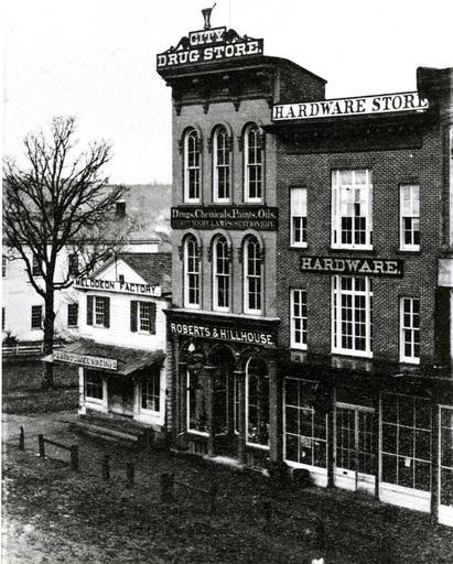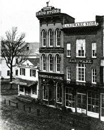Keywords: outdoor blackandwhite architecture building black and white Northeast corner of West Main Street at Rose, Kalamazoo, c1860 [picture] General Note: Description: Good of melodeon factory (Blakeman & Gibbs, Greek Revival), Roberts & Hillhouse City Drug Store (Italianate) and the three story brick hardware store. The white frame building at the far left behind the tree is the Tremont House hotel. This is identical to, and possibly a copy of, the Kalamazoo Valley Museum photograph 52.197. General Note: Verification: Taken after the 1853 fire and before curbs and Nicholson pavement were laid in 1866. General Note: Holdings: 1 - 10" X 8" copy print. From the Kalamazoo Public Library collection. kpl.gov Northeast corner of West Main Street at Rose, Kalamazoo, c1860 [picture] General Note: Description: Good of melodeon factory (Blakeman & Gibbs, Greek Revival), Roberts & Hillhouse City Drug Store (Italianate) and the three story brick hardware store. The white frame building at the far left behind the tree is the Tremont House hotel. This is identical to, and possibly a copy of, the Kalamazoo Valley Museum photograph 52.197. General Note: Verification: Taken after the 1853 fire and before curbs and Nicholson pavement were laid in 1866. General Note: Holdings: 1 - 10" X 8" copy print. From the Kalamazoo Public Library collection. kpl.gov |