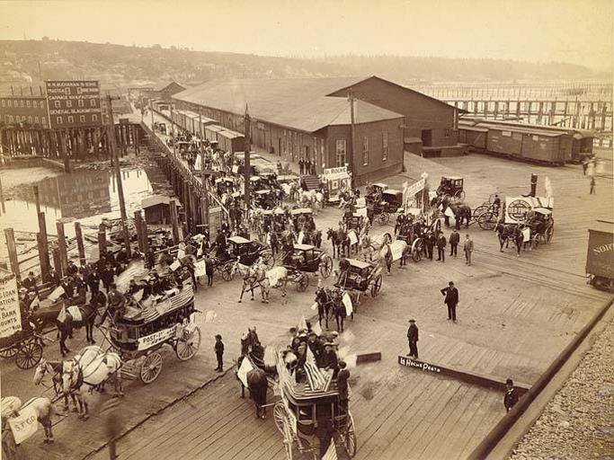 Keywords: Northern Pacific freight warehouse at S 3rd Ave and Lane St, Seattle, Washington, ca 1891 (LAROCHE 171).jpeg Photograph Creator Frank La Roche Shows unidentified event with Frank La Roche photography and souvenir stand; W W Buchanan and Sons carriage wagon and harness manufacturers in background Subjects LCTGM Warehouses--Washington State --Seattle; Buildings--Washington State --Seattle; Piers wharves--Washington State --Seattle; Railroad cars--Washington State --Seattle Subjects LCSH W W Buchanan and Sons Seattle Wash ; Northern Pacific Railroad Company; Lane Street Seattle Wash ; Third Avenue Seattle Wash ; Bridges--Foundations and piers; Horse-drawn vehicles--Washington State --Seattle This would have effectively been part of the Pioneer Square neighborhood at the time; it is now right about the north side of CenturyLink Stadium depicted place Seattle Washington ca 1891 Institution University of Washington UWASH-LAROCHE-source accession number laroche 171 PD-old-auto-1923 1936 Information field Order Number LAR302 Northern Pacific Railway Warehouses in Seattle Piers in Washington state Wharves in Washington state Former buildings of Seattle Road-rail vehicles Horse-drawn vehicles in the United States Pioneer Square Seattle Washington Seattle Washington in the 1890s Black and white photographs |