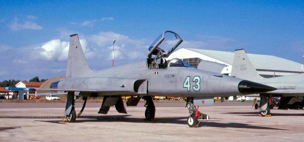 Keywords: Northup F-5E 74-1543.jpg en Northrup F-5E Tiger II 74-1543 Delivered to the unit on 21 May 1976 It initially carried the ˜Ghost ™ colour scheme but by 1983 this had been replaced by a light grey colour scheme as seen on the photograph which was taken at Decimomannu AB Sardinia on 24 October 1985 The nose numbers were painted in a pale blue outlined in black Additionally the star bar and ˜US Air Force ™ legend appeared in dotted outlines only The aircraft entered storage at RAF Kemble in May 1988 and was sold to the Moroccan AF as 01543 being delivered via Zaragoza AB Spain on 24 February 1990 USAF Photo by Scott R Wilson 1985 Source United States Air Force Photo Alconbury Agressors Jan van Waarde United States Air Force other versions PD-USGov Northrop F-5 Tiger II F-5 Tiger II at RAF Alconbury 527th Tactical Fighter Training Agressor Squadron United States Air Force Units at RAF Alconbury |
