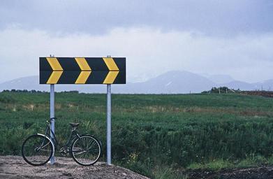 MAKE A MEME View Large Image norway curve bike traffic sign road sign shield road street sign arrow right yellow black mountains scan kb dia