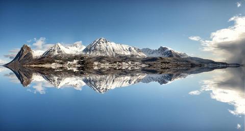 Keywords: norway fjord nature water view landscape arctic circle scandinavia ship travel mirroring loneliness mountain snow clear cold clouds wintry summit icy