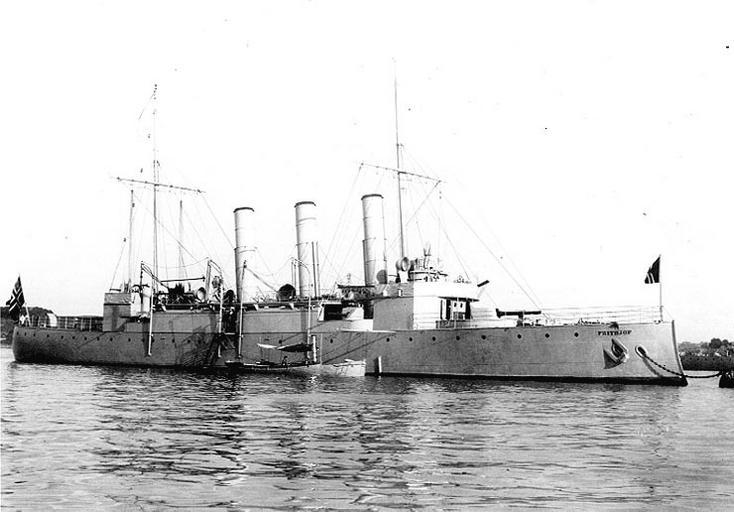 Keywords: Norwegian gunboat Frithjof.jpg Kanonenboot Frithjof 1895 “1927 der norwegischen Marine Norwegian First Class Gunboat Frithjof 1895 “1927 U S Naval Historical Center Photograph Photo NH 48560; http //www history navy mil/photos/sh-fornv/norway/frithjf htm 1900 Creator Arthur Renard Conway's All The Worlds Fighting Ships 1860-1905 classifies this ship as a small protected cruiser on account of its armoured deck PD-old Cruisers of Norway Arthur Renard |