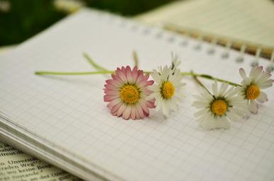 Keywords: notebook book book pages paper blank pages leave daisy empty leaf flowers